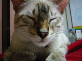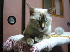 あとは常に寝ます。ひたすら寝ます。手作り猫タワーにて。