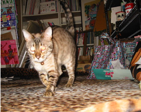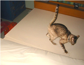 ベッドのふとんをめくったトコ、好きっ。ナナメ歩きで威嚇するぞっ。