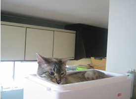 せまいところで好んで寝ますが、何か?