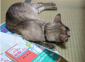 こういう散らかり具合がいいのよね。あら、何の本かしら。
