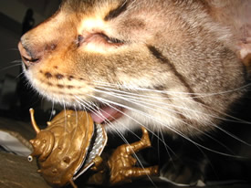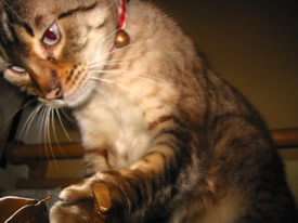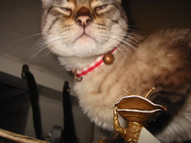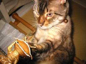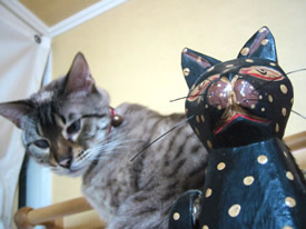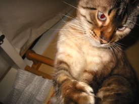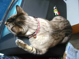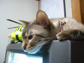 上から見ないでよ。ニシキヘビ柄からサバ柄に変わってきたのがばれちゃうじゃない。