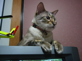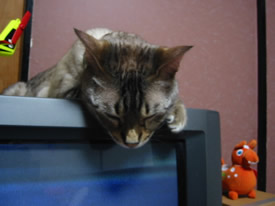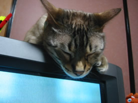 おうよ。テレビの上はぬくいのよ。