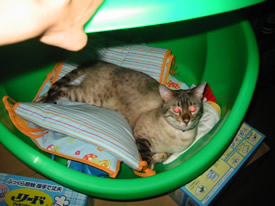 あっ赤ちゃんグッズの上で寝てる!