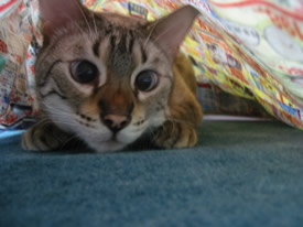 頭だけ隠れてみたり…。
