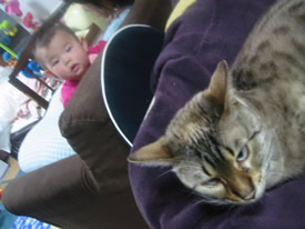 やっぱりあいつや。しゃあないな。わろてけつかる。もうちょっと大きくなったらさわらしたる。