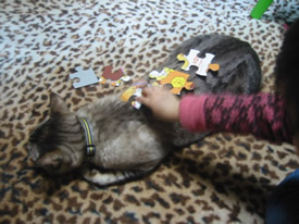 やけに楽しそうだね。うたいながらパズルしてやがる。
