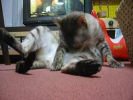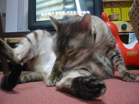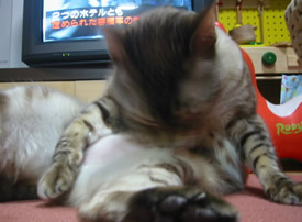 あ、失礼。マメにね、きれいにしないとねえ。ベロッベロッ。